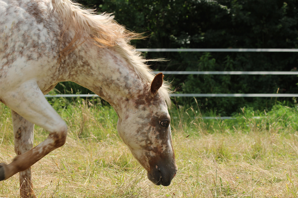 "Semir" - benannt nach unserem TV-Helden Semir Gerkhan aus "Alarm für Cobra 11" - erfreut uns mit rasanten Zirkeln und schnellen Wechseln aus jeder Position. Er ist ein lieber Kerl im Umgang und sehr brav unter dem Sattel.