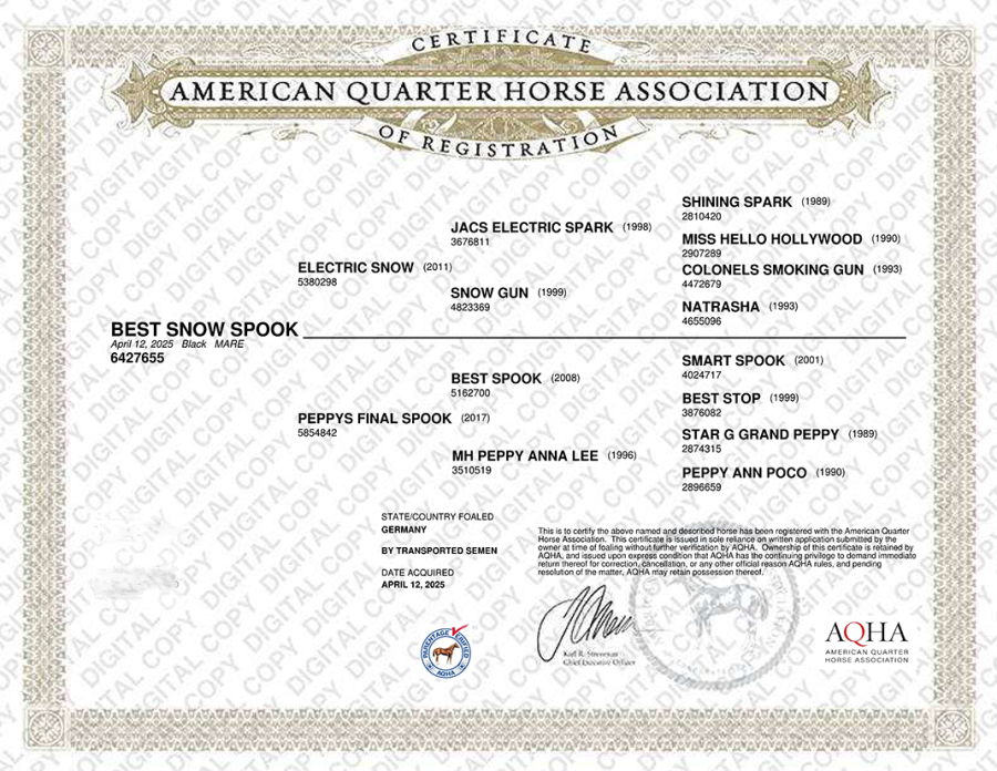 5PN Test: HYPP n/n, HERDA N/N, GBED N/N, PSSM n/n, MH n/n