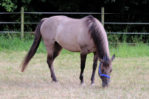 Die korrekte Farbbezeichung für "Scooty" ist Light slate/silvery Grullo, "Scooty" trägt kein Creme Gene.