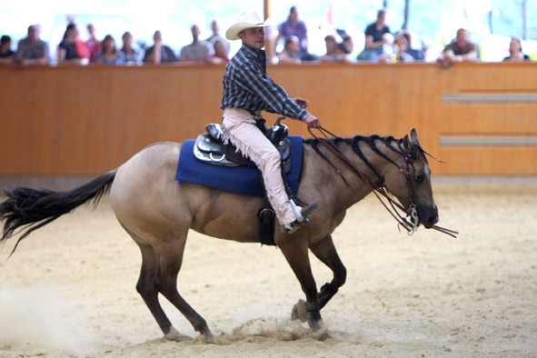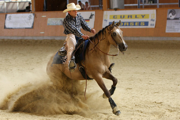 "Wilma" ist farbstabil Dun mit Snowflakes, die je nach Jahreszeit unterschiedlich ausgeprägt sind und sich im Laufe ihrer Lebensjahre stetig vermehrt haben. COMANCHE HOLLYWOOD hat einen umfangreichen Showrecord in Reining.