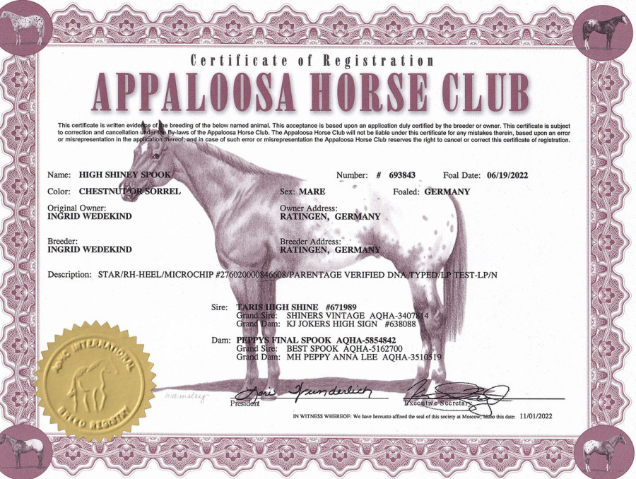 Wir setzen weiter auf die Anpaarung von Appaloosa mit hochqualitativen Quarter Horses und hatten deshalb eine schwarze Jungstute gesucht.
