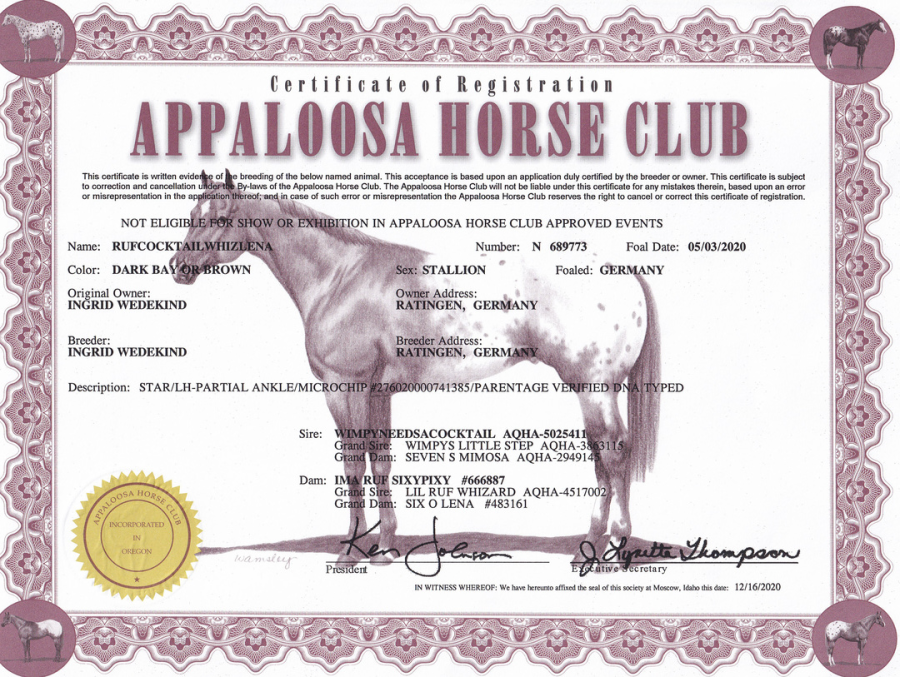 Ausnahme-Pedigree mit WIMPYS LITTLE STEP, HOLLYWOOD DUN IT, LIL RUF PEPPY, TOPSAIL WHIZ, HOLLYWOOD JAC (NRHA Million Dollar Sires) sowie HIGH SIGN NUGGET & IMA DOC O'LENA (ApHC Hall of Fame).
