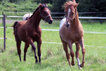 Bei uns ist er im Umgang völlig unkompliziert und nicht hengstig, er läuft zB auf der Weide gemeinsam mit zwei Wallachen. "Tipsy" zeigt auch sich unter dem Sattel kooperativ und wird bei kontinuierlichem Training ein sehr gutes Reitpferd. In Zukunft sehen wir ihn als zuverlässigen Partner in Sport und Freizeit.